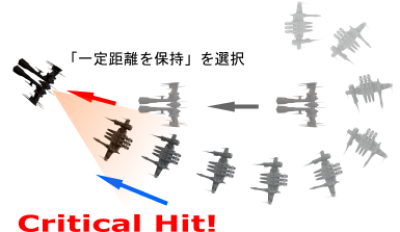 また、スクラムレンジの有効範囲ギリギリを飛ぶ事になるので、もし相手との距離が離れ過ぎてスクラムが外れそうになった場合は、相手に対して一瞬0km「アプローチ」したり、船を停止させてから再度「アプローチ」する等(※)、操艦に工夫が必要になってきます。